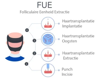 FUE staat voor Folliculaire Eenheid Extractie of Excisie. Het is de nieuwste beschikbare chirurgische procedure die wordt gebruikt om haar van het ene gebied van de hoofdhuid naar het andere te transplanteren door individuele haarfollikels uit het donorgebied te extraheren en deze te transplanteren naar de kalende of dunner wordende gebieden. De procedure is minimaal invasief en wordt doorgaans gebruikt om patroonkaalheid te behandelen, maar kan ook worden gebruikt om andere soorten haarverlies te behandelen.